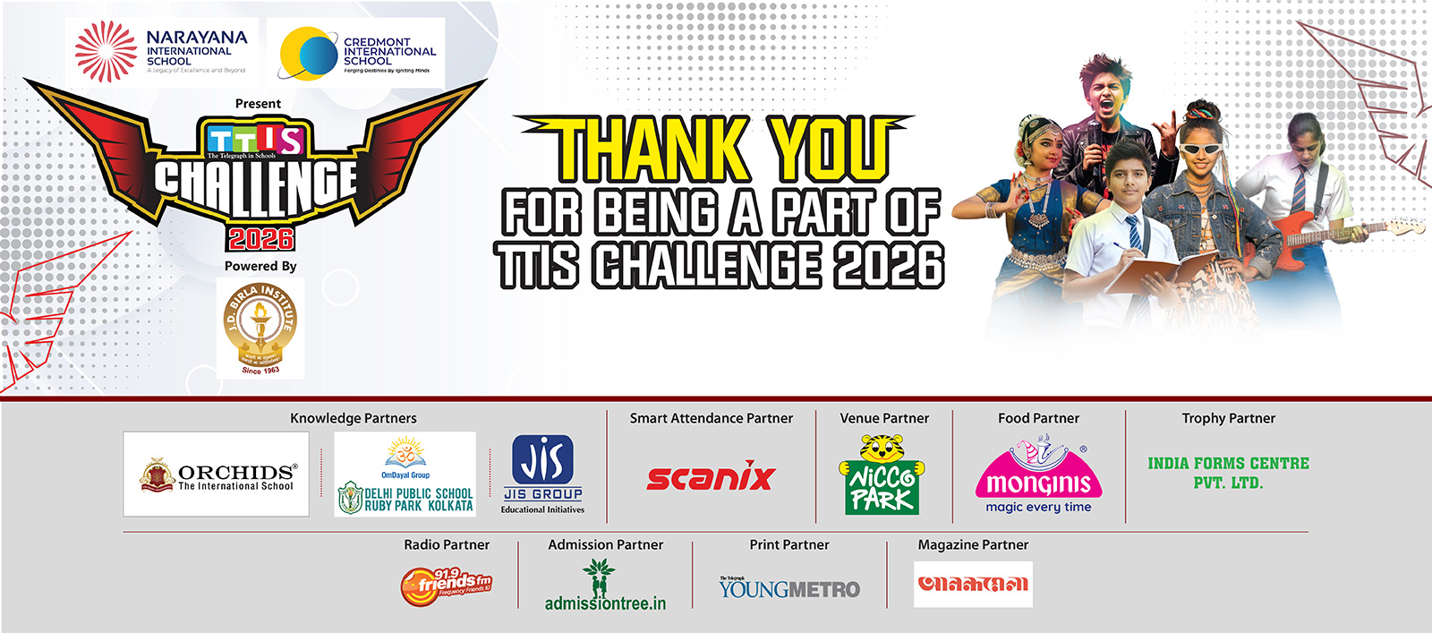 We are thrilled to announce that the TTIS Challenge is back, continuing its legacy of inspiring and empowering students through a dynamic and competitive platform. Over the years, the event has witnessed remarkable growth, firmly establishing itself as Eastern India’s Biggest School Carnival. What began as a simple initiative has evolved into a grand celebration of knowledge, creativity, and talent. The TTIS Challenge has consistently drawn overwhelming participation from schools and students alike, all eager to showcase their skills across diverse categories. Each year, the challenge continues to raise the bar, setting new benchmarks in terms of diversity, scale, and quality.